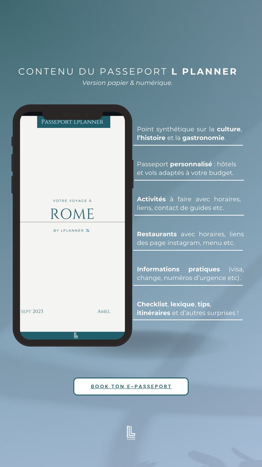 Véritable accessoire de voyage à la fois utile et instagramable, le passeport L PLANNER se caractérise par son unicité et son originalité, et constitue un magnifique souvenir à conserver !